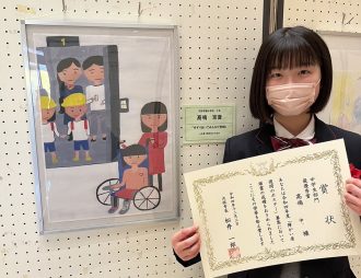 本校では、美術の授業で、中学2年生が障がい者週間啓発のポスター制作に取り組み、応募しました。
