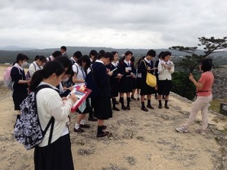 チビチリガマと座喜味城址での平和学習の様子が届きました。