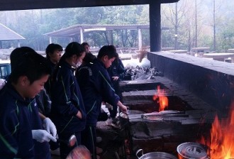 小雨のなか、みんな一生懸命カレーを作りました♪