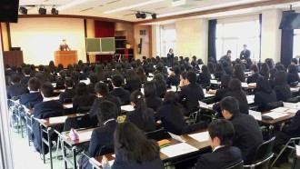 高校進学コースの3年生を対象に、併設校の羽衣国際大学と取り組む「高大連携授業」の様子です。今年度より講座内容が9講座まで増え、実にバラエティー豊かなテーマから選択して受講できるようになりました。