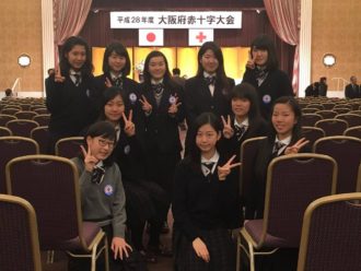 1000名を超える参加者があった平成28年度の大阪府赤十字大会。本校ボランティア部からは10名の部員が参加しました。