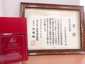 JICAエッセイで特別学校賞受賞