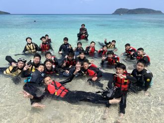 朝食のバイキングをいただいた後、女子は浦内川でのカヌー体験、男子は白浜港から船で約10分乗船して船浮港にわたり、イダの浜でのシュノーケリングです!