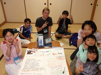 イングリッシュキャンプでは、各グループに外国人講師の先生が1名ついて指導して下さいました。