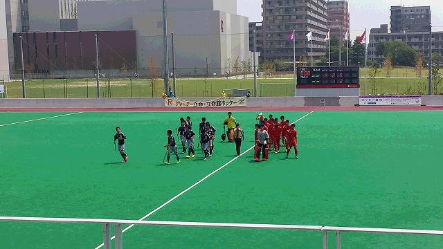 1回戦は、立命館茨木キャンパスのホッケー場で、東北ブロック・福島県代表の修明高校との対戦でした。