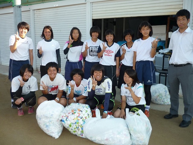ペットボトルキャップ回収運動は、ボランティア活動の中で、エコキャップ収集協会とつながり、ホッケー部を中心に始まりました。