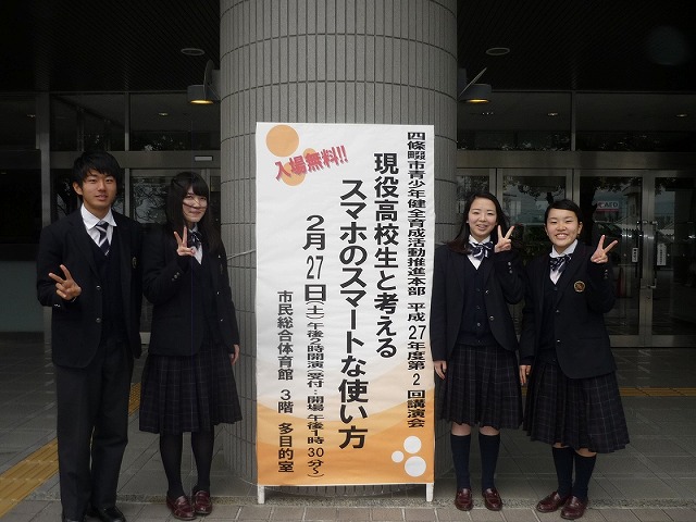 先月末、ボランティア部の4名が、寝屋川市教育委員会主催のイベントでネットモラルに関する講師をつとめました。
