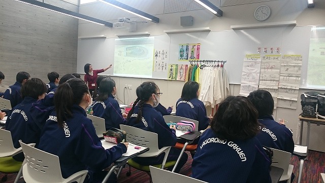 中学1年生は歴史の授業で、近つ飛鳥博物館の方に「古代衣装体験」の出前授業をしていただきました。
