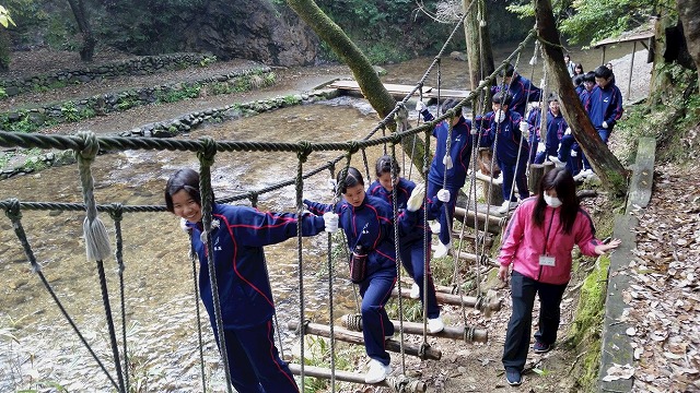 新入生オリエンテーション合宿の中学生の様子が速報で入ってきました! 良いお天気に恵まれ、午前中はアスレチックや川遊びなどを楽しみました。