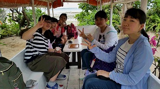 生徒たちは、南の島のリゾート気分に大喜びです!