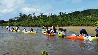 逆風の中、一生懸命カヌーを漕ぎました!