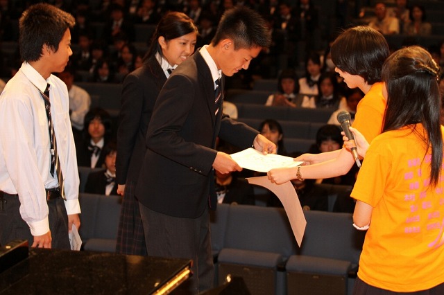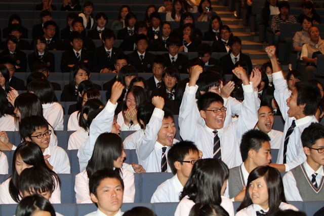 表彰の後、優勝2クラスがもう一度舞台で歌い、笑顔と涙にあふれました。