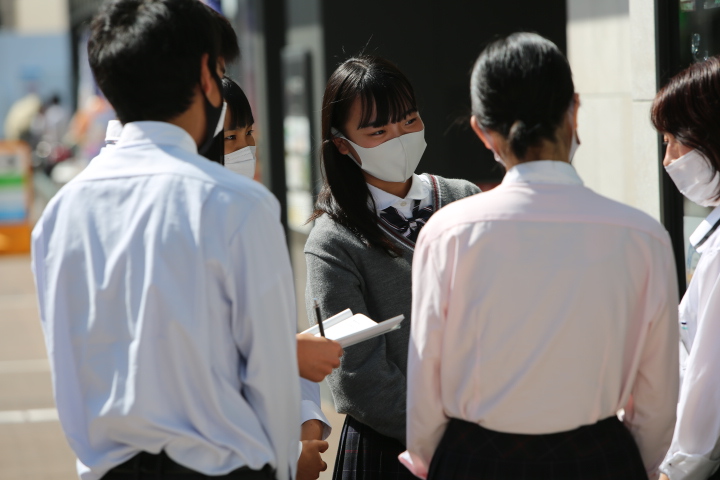 もちろん、生徒たちは初めての体験で緊張した様子でしたが、それぞれ歩行者の方にインタビュー協力を呼びかけ、質問していました。