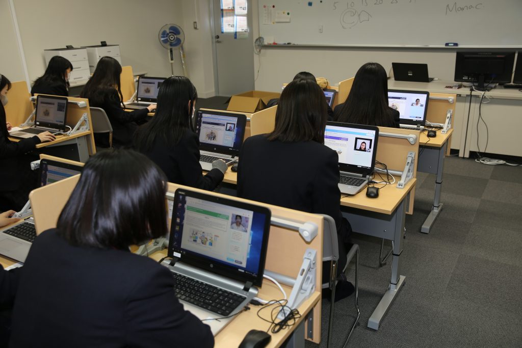 高1・Ⅱ類では、さらに英語の授業時にオンライン英会話で、英検対策を重点的に強化しました!