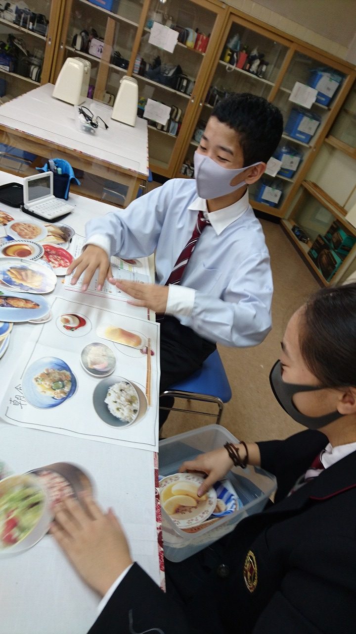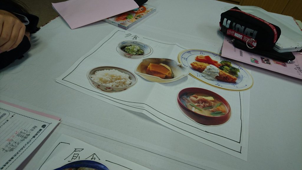 中学1年生の家庭科の授業では、食べ物の栄養素や食品群について学んでいます。