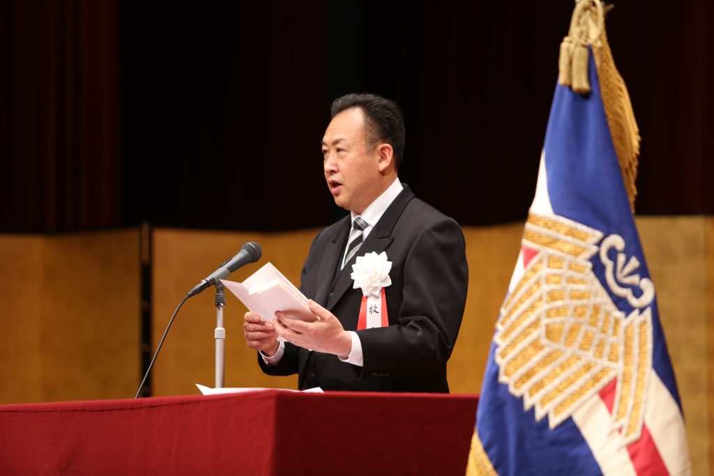 新校長・中野泰志先生からの式辞では、学園の歴史を紹介しながら、創立者・島村先生が夢をもって羽衣学園を創立されたように、「夢や目標」をもつこと・その実現に向けてしっかりと「戦略」を立てて、チャレンジし続けるように、とのアドバイスがありました。。