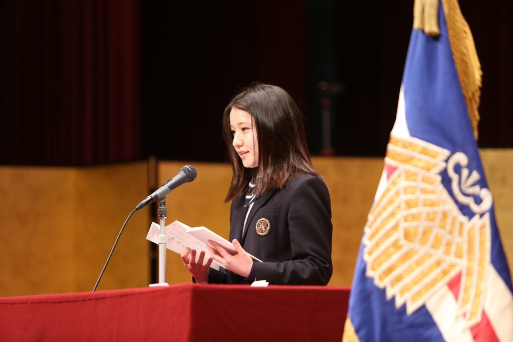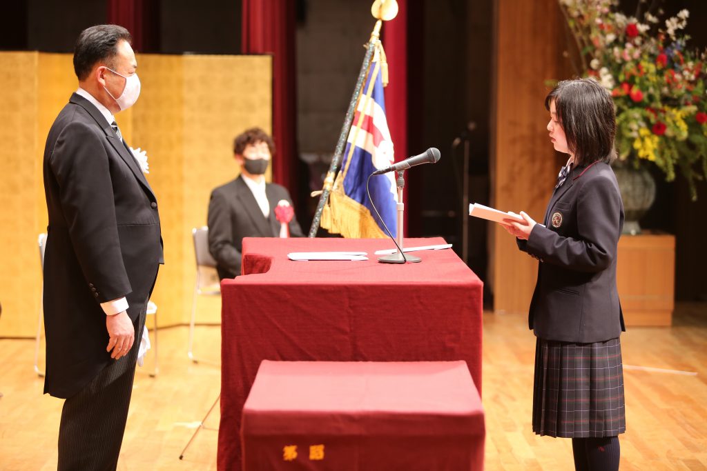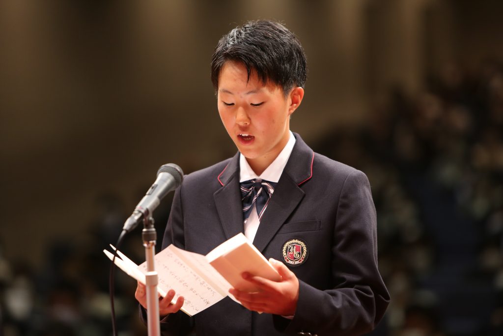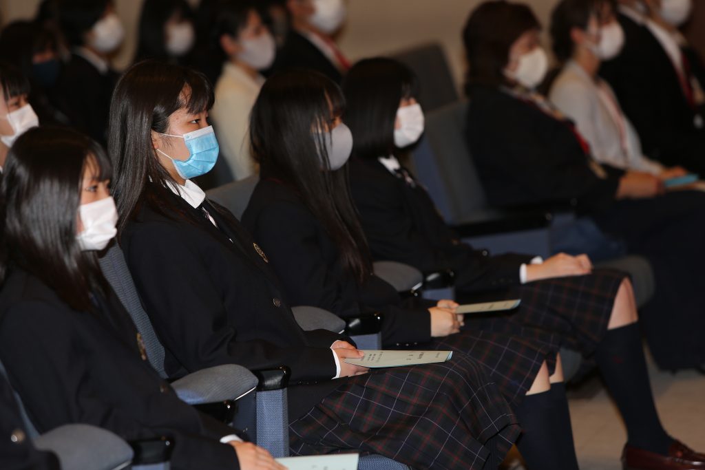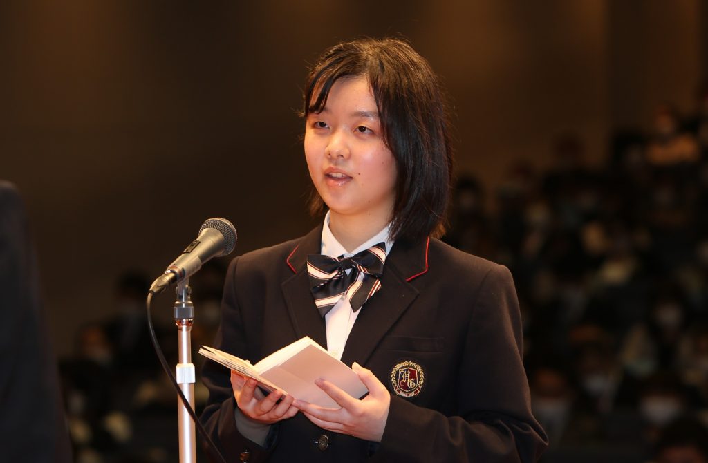 第二部では、藤野さんから、真摯に学ぶことの意味や意義について触れながら、高校生活に向けての決意が語られました。