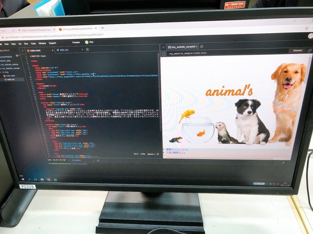 1学期でCode.org等で基礎を学び、2学期にはCloud9を利用して、HTMLとCSSで、ホームページ作成を行いました。