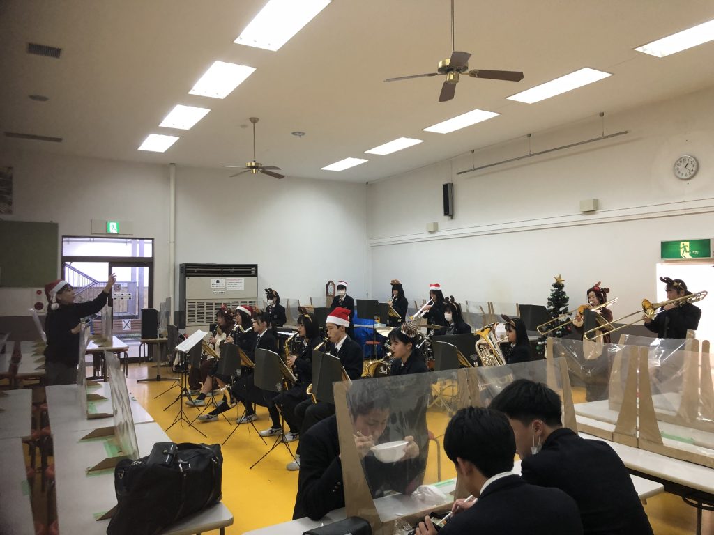 吹奏楽部では、12月20日の昼休み、食堂にてクリスマスミニコンサートをおこないました♪