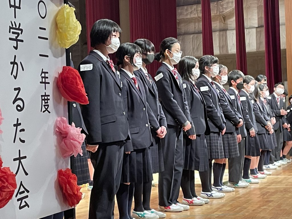 体調管理と感染予防に努めながら、何とか無事に最後まで開催できました。1~2回戦は各教室で分かれての個人戦で、クラス代表を決め、最後は講堂に全員会しての3~4回戦でした。