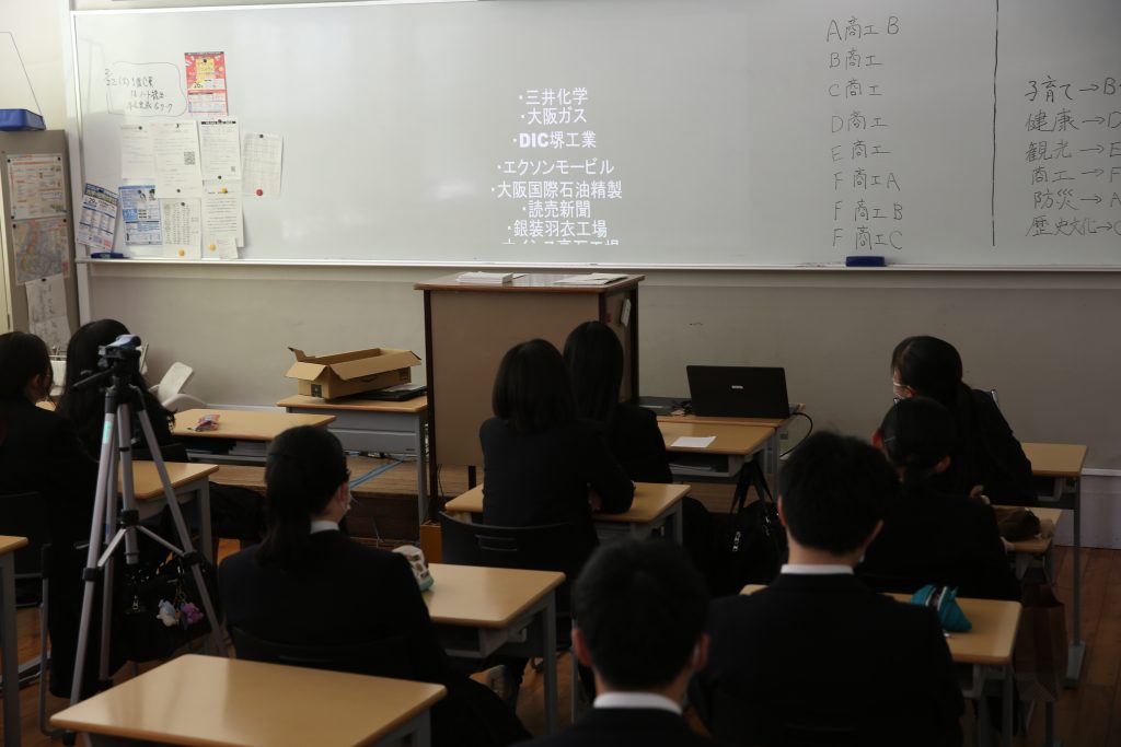 「総合的探究学習」で高2進学コースが取り組んできた、高石市とのコラボ授業・「高石市のPR動画作成」のテーマ学習も最終を迎え、いよいよ各グループで作成したPR動画を発表会をおこないました。