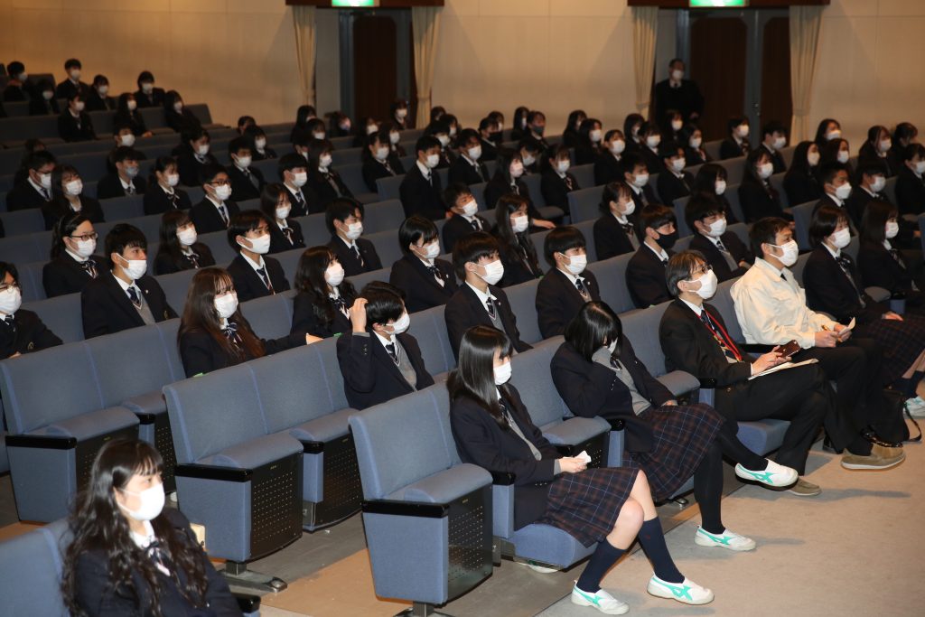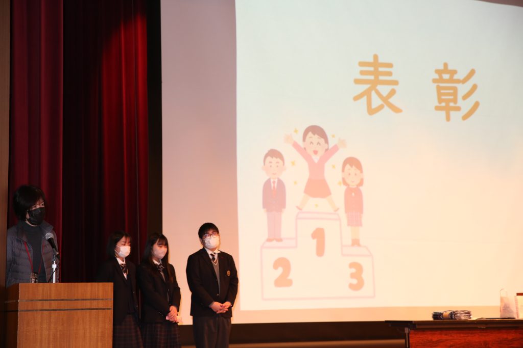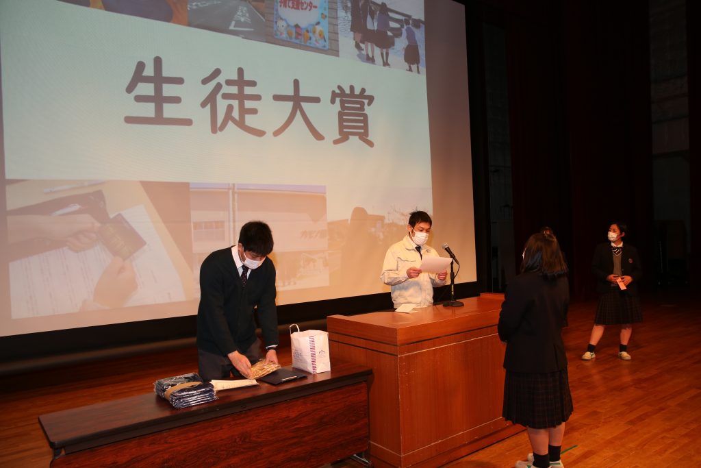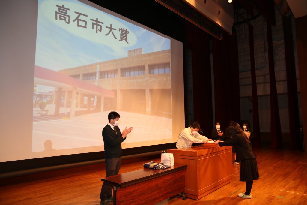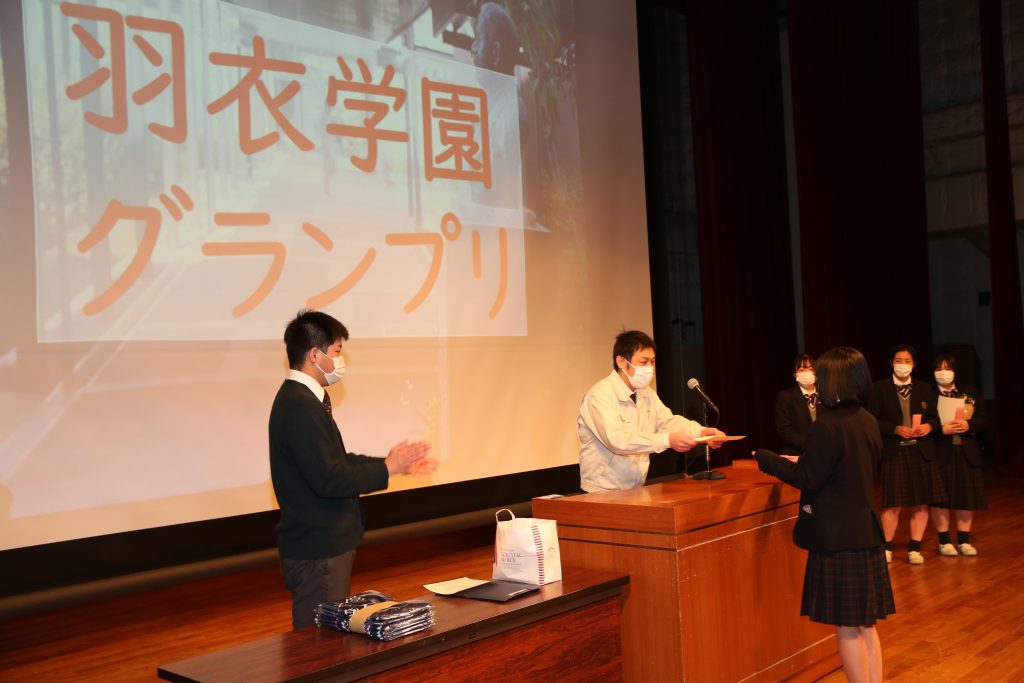 生徒の投票結果による「生徒大賞」、先生方が選ぶ「羽衣学園グランプリ」、「高石市大賞」と3つの作品を選び、それぞれ高石市・初田様より表彰をしていただきました。