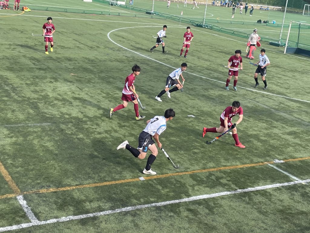 2戦目は兵庫県の甲南高校との対戦です。練習試合でも対戦経験があり、インターハイ予選でも対戦する可能性のあるチームに対し、果敢に攻め込みます。一時リードを許しますが、後半のペナルティコーナーでFW・徳和目君が見事なゴールを決めるなど、得点を積み重ね、5‐1で勝利しました。