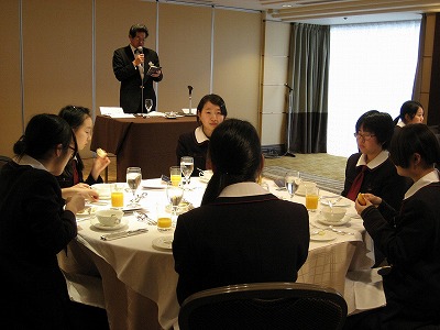 お昼は、京都ロイヤルホテルでテーブルマナーの講習を受けました。 説明を聞き、いよいよ実践です。