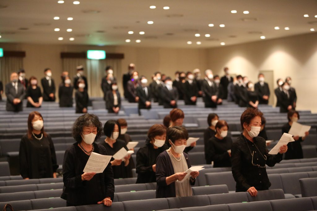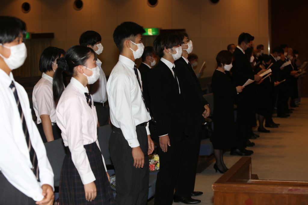 当日は多くのご遺族、同窓生、卒業生の方々にご参列いただきました。また、本来であれば、高3学年の生徒が参列する行事ですが、今年も感染防止のため、各学年の代表生徒、国際大学学生の代表者のみの参列といたしました。