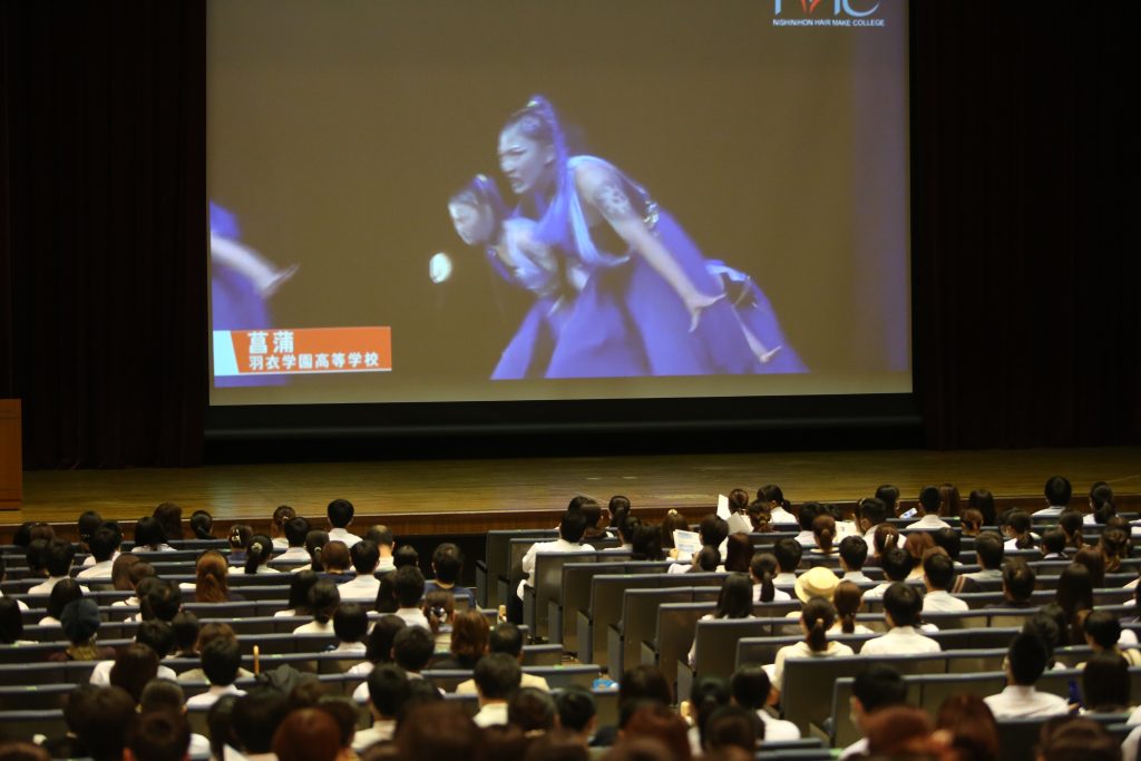 開式に先立って、ダンス部の活躍の映像、およびVIVAの生徒たちが作ってくれた校内施設紹介ムービーを流し、皆さんに見ていただきました。