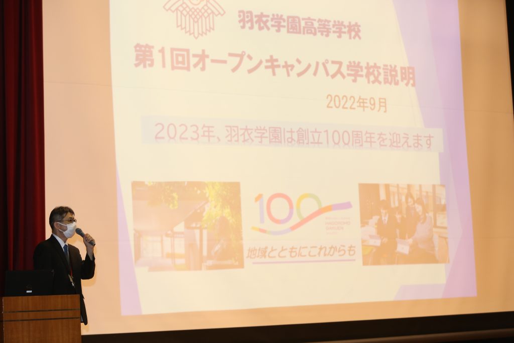 そして、VIVAの皆さんの司会で開会。まず羽衣学園高校の行事について紹介するプレゼンを披露。今年行った行事等を紹介しました。