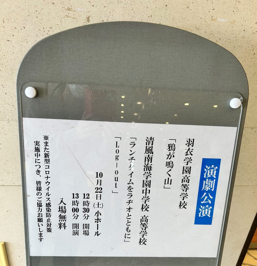 10月22日(土)に、高石市・高石市教育委員会主催の「高石市民文化祭・演劇祭」にて本校演劇部が公演をしてきました!