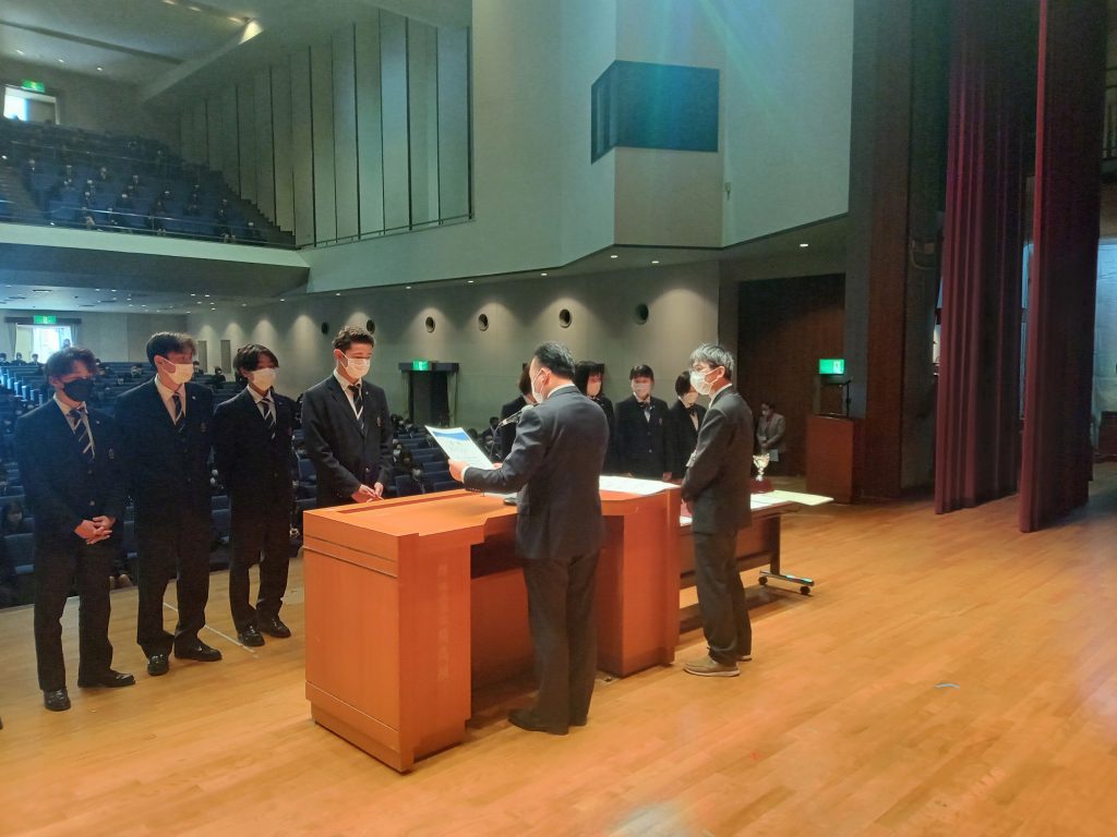 続くクラブ活動などの表彰では、冒頭に泉大津税務署より署長の増田様にお越しいただき、「税の作文」コンクールで入選した4名の高校生へ署長様より表彰をしていただきました。それぞれ大阪国税局長賞・泉大津税務署長賞・泉北租税教育推進協議会会長賞が授与されました!