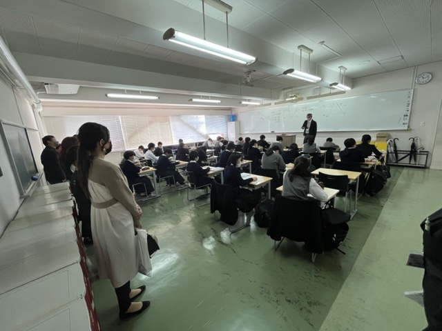 中野校長からの挨拶のあと、中1の牧野さん・藤本さんによる3学期の行事報告のプレゼンがありました。かるた大会やスキー校外学習など、参加いただいた皆さんに羽衣の行事の魅力を伝えてくれました。小山教頭の学校説明の後、授業見学・校内見学にご案内いたしました。羽衣学園を初めて訪問していただいた方も多く、学園の魅力を少しでも感じていただけたら幸いです!