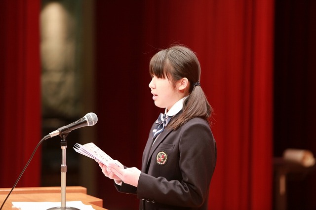 羽衣学園の講堂は1200人収容の大きな施設ですが、中高の生徒だけで2階席までビッシリとうまってしまいました。
