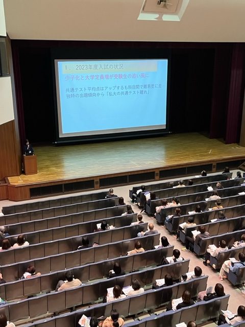 全体会では、岡野進路指導部長より昨年度の入試結果、入試制度、今後のスケジュールや保護者の皆様におねがいしたいことなど、説明させていただきました。