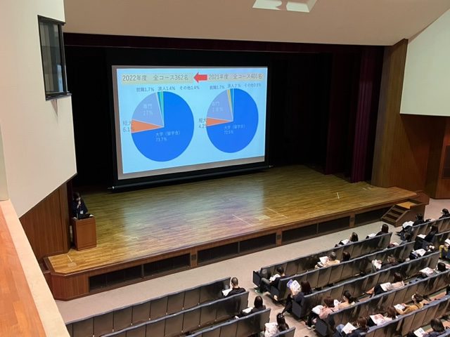 高校生になって間もない時期ではありますが、本校の進路指導方針、昨年の結果と特徴、各コースの目標と具体的な指導などについてお話をさせて頂き、早い段階から進路について情報を提供させていただきました。