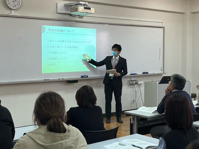 文理特進Ⅰ類コース・Ⅱ類コース・進学コース、それぞれコース長より昨年度のコースの結果、目標、具体的な取り組みなどについて詳しく説明させていただきました。