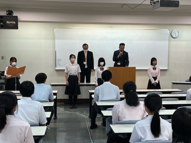 高校終業式における校長先生の式辞では、コロナ禍からは一段落したものの、当たり前の日常への感謝の気持ちを忘れないこと、少しずつ感染が増えているコロナウイルスへの注意が呼びかけられました。