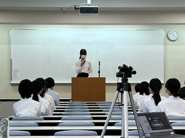 1時間目高校、2時間目中学の順に実施。司会は中高とも放送部員が担当です。