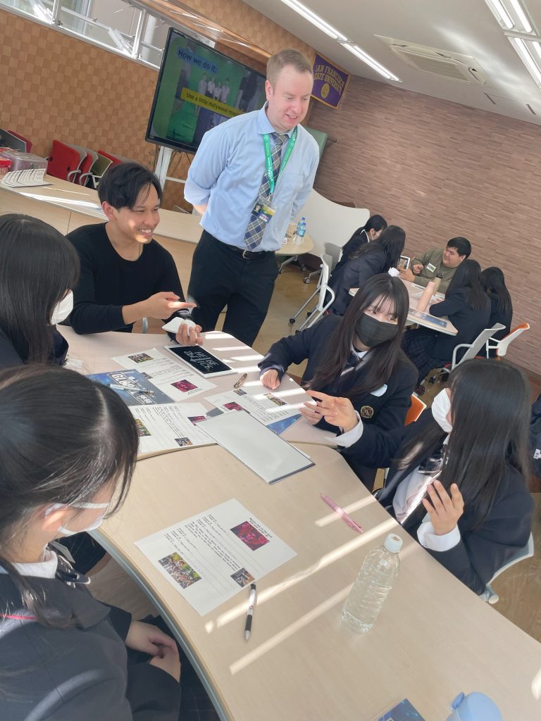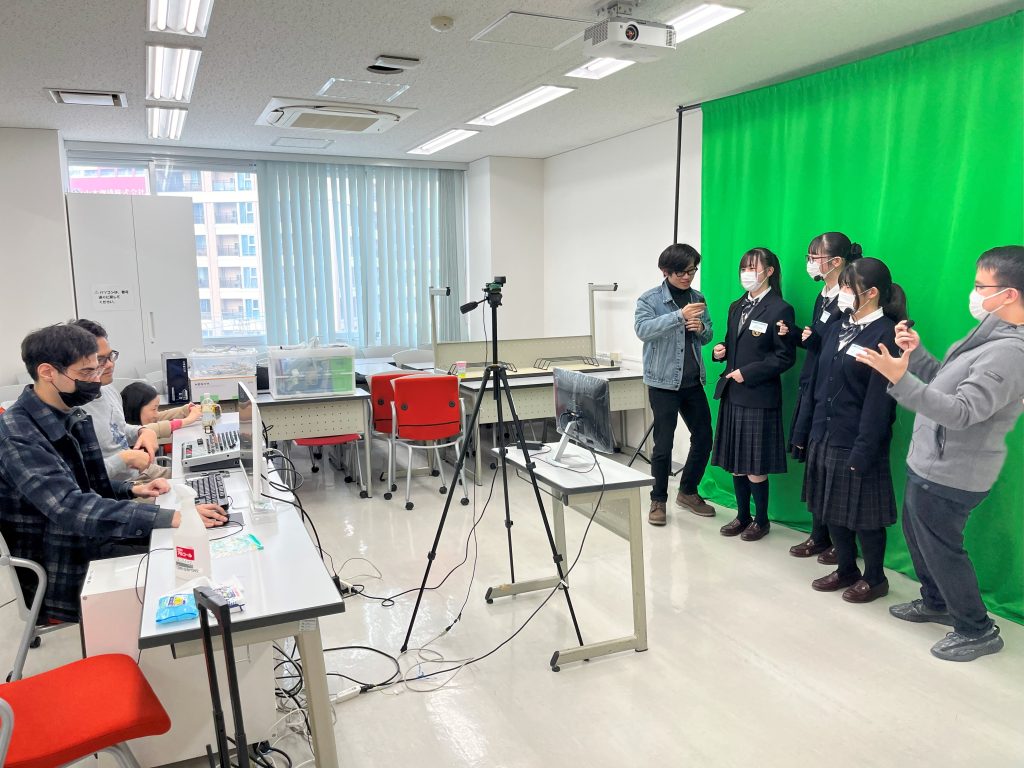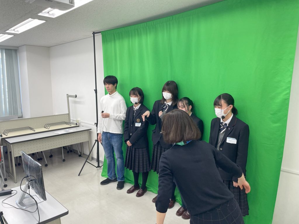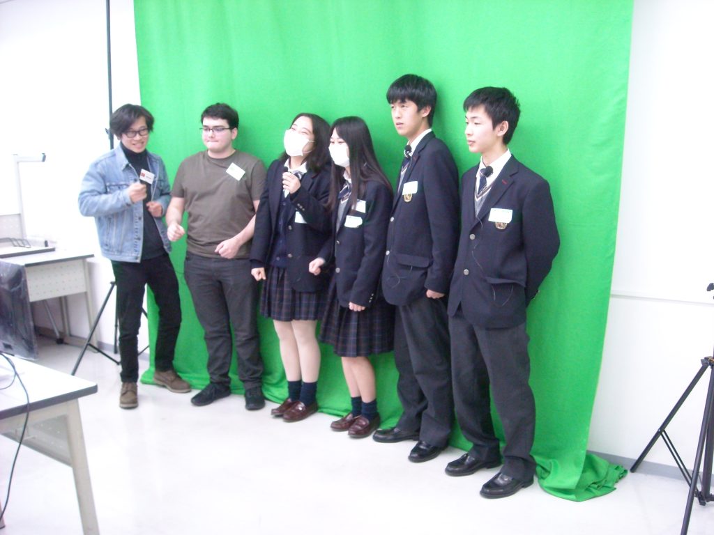 さらに、留学生と協力して英語のセリフを考えながらロールプレイを練習し、スタジオでビデオ撮影を行いました。