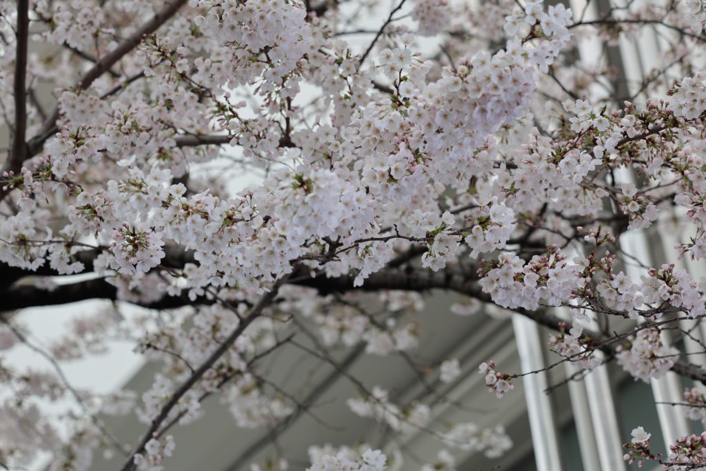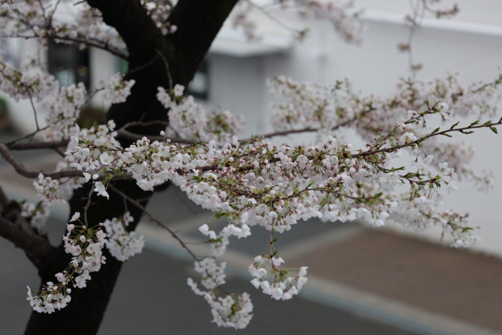 門井先生が撮影された桜の花を掲載いたします!工事中で少し隠れてしまっていますが、見事な花を咲かせています!