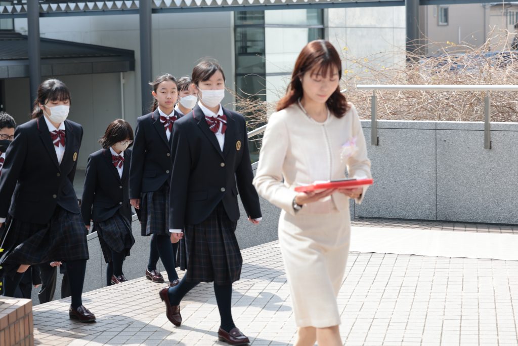 学年団の紹介のあと、千田様より保護者代表のご丁重なあいさつを頂戴し、校歌斉唱で式を終えました。