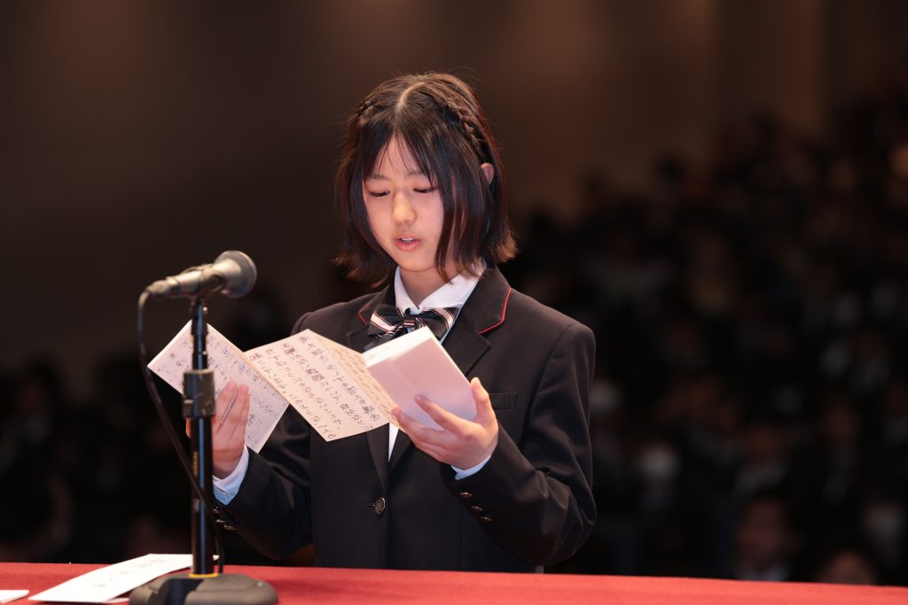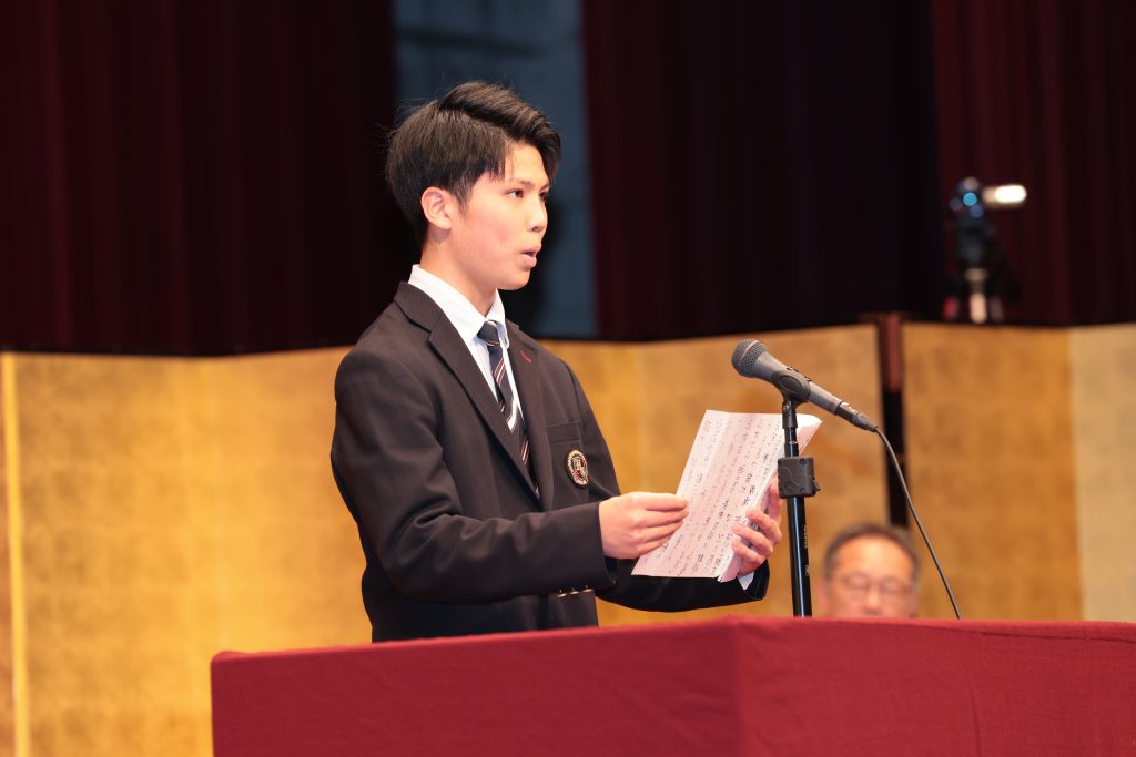 パイプオルガン演奏の後、答辞では新入生を代表して山本さんが、感謝の思いをもってこれからの高校生活に向けての決意が表明されました。