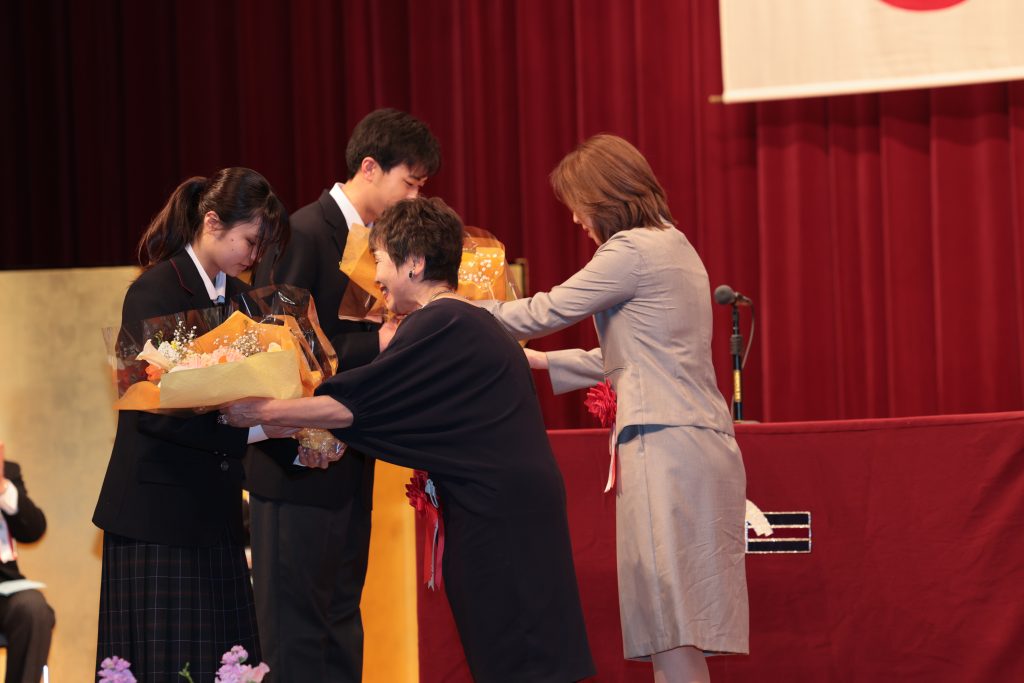 PTA伊藤様、松園会喜多様よりお祝いの花束が山本さん、河野さんに贈られました。