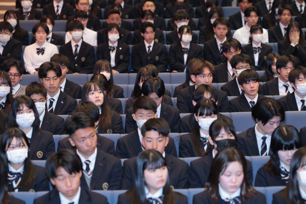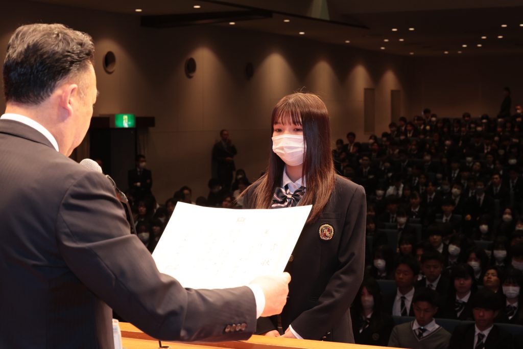 クラブ等の表彰では、高校で「全国ポストカードデザイン大賞」準大賞の杦本さんをはじめとする美術部、ボクシング全国選抜大会で3位に入った2年の三木さんが表彰されました。