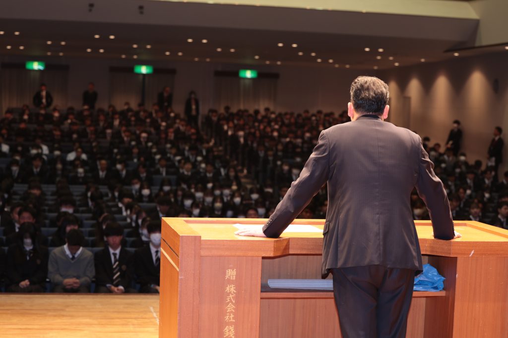 式は1時間目に中学、2時間目に高校の順に行われ、高校は1年生のみ教室にてライブ配信を視聴する形で実施しました。(写真は高校始業式の様子です)