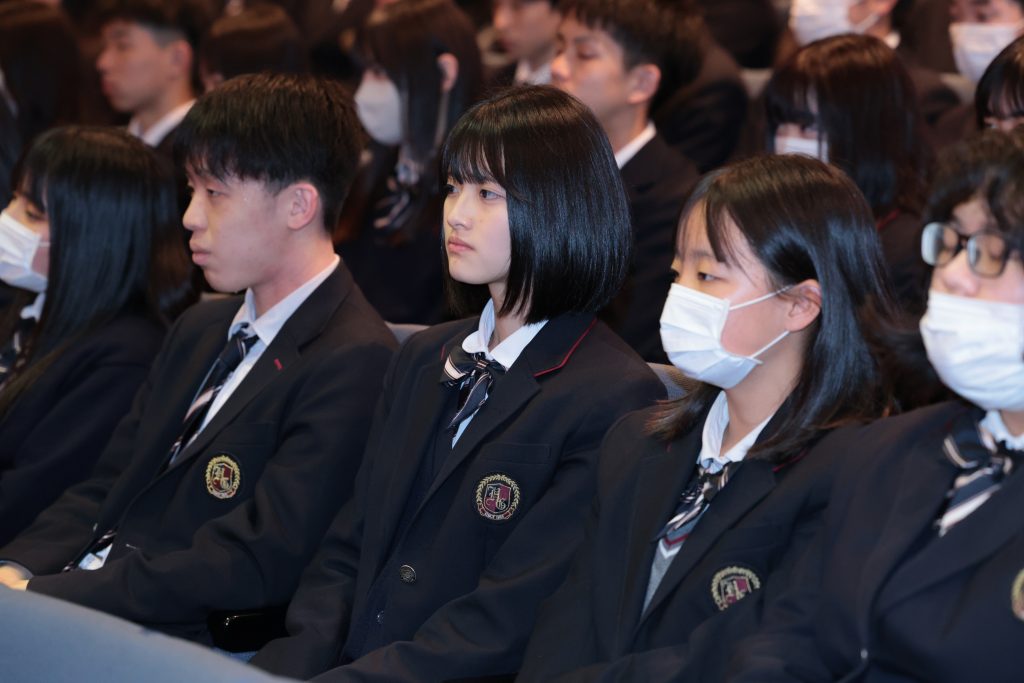 中学は井上先生、高校では大野先生から、通学路や駅・電車内などでのマナーなど含め、これからの学校生活で注意をすべき点についてお話がありました。