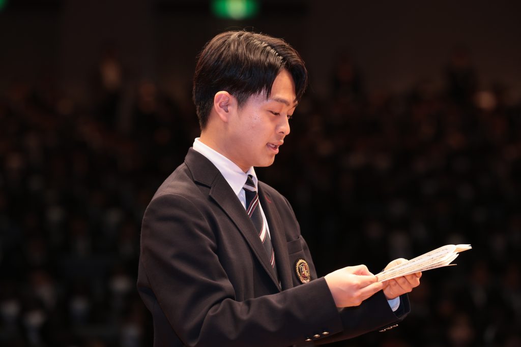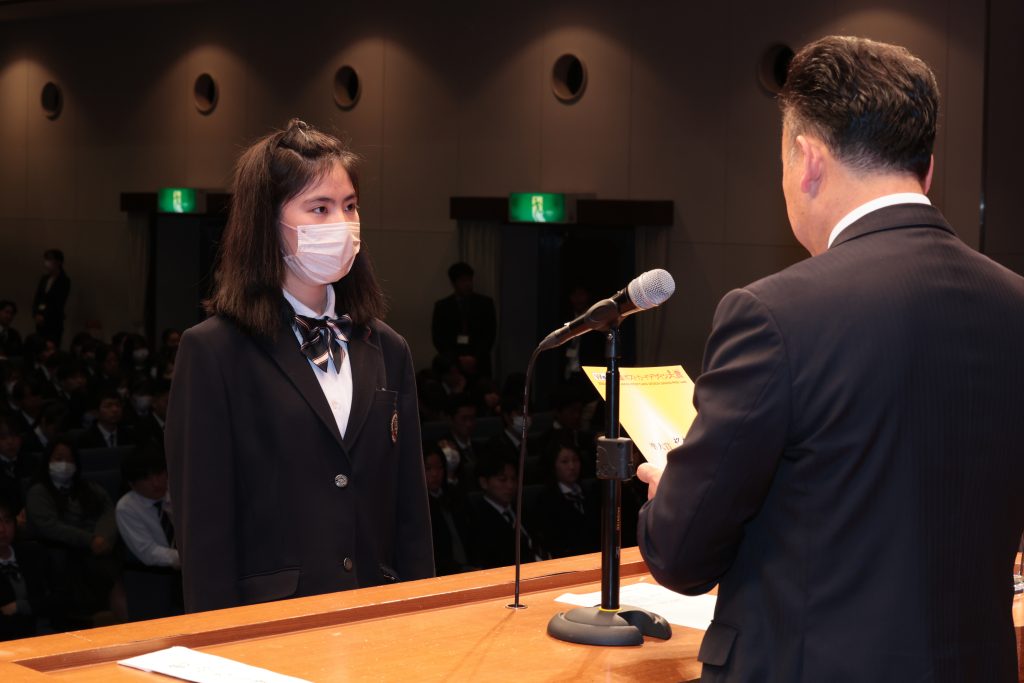 生徒代表として、中学校では3年生の堂上さんから、高校では3年の池宮さんから、新しく教壇に立たれる先生方に、歓迎の言葉が述べられました。