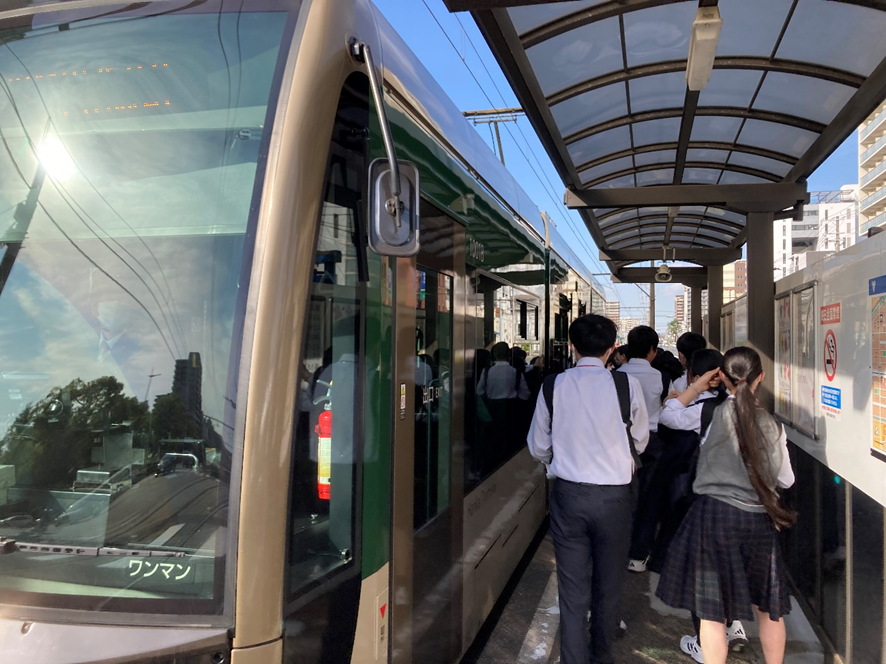 1、2組は最初に浜寺公園から阪堺電車に乗り『南宗寺』へ。